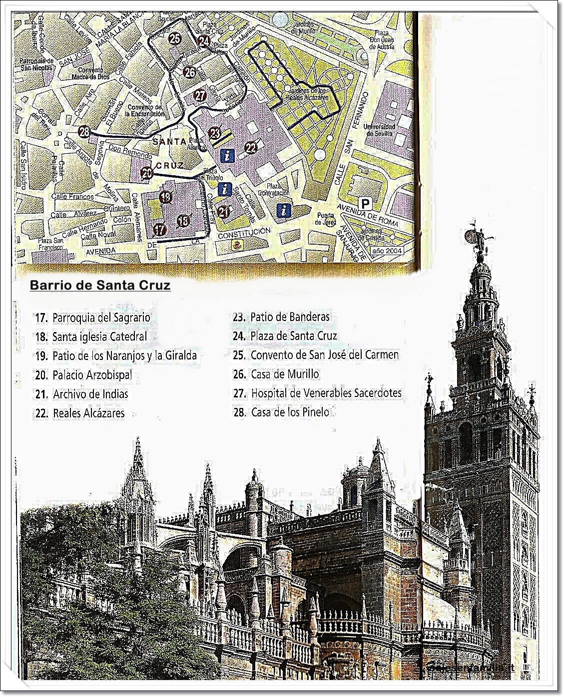 que proponía es lo que al final hicimos, de modo que yo os dejo las propuestas y haré aclaraciones en algunos de ellos . Tengo que decir , que como eran fechas muy próximas a la Semana Santa , muchas iglesias estaban ya preparando los pasos , e incluso en algunas ya pudimos verlos montados , tal como hubieran desfilado en las procesiones , también aplazadas o interrumpidas por la lluvia días después. Como son muchos los monumentos, iglesias, conventos etc. a los que hacen referencia los paseos yo solo hablare de algunos, pero os dejo en la parte izquierda de la página dos botones que dan acceso a dos guías muy buenas de Sevilla , donde podréis encontrar la historia de los lugares que describen los paseos de una forma mucho mas amplia.